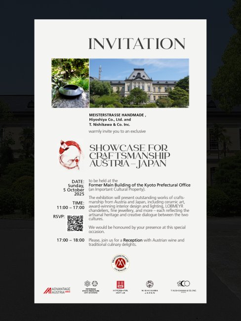 The cooperation with Meisterstrasse adds another dimension to the dialogue: for over 20 years, Meisterstrasse has brought together the best in craftsmanship, art, and design. In Kyoto and Osaka, this connection becomes tangible – a delicate interplay of tradition and innovation that showcases Austrian creativity in all its facets on the international stage.
